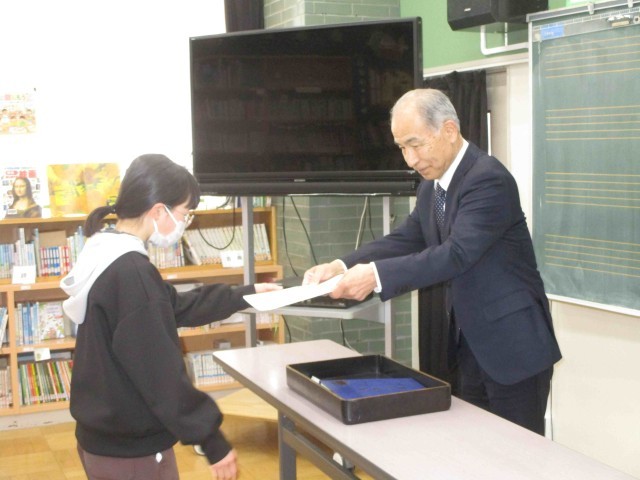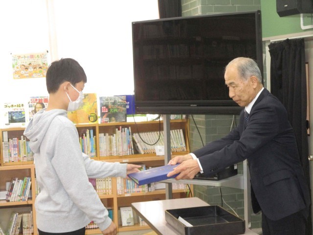 谷田川小学校の同窓会入会式を行いました。会長様はじめ4名の役員様に参加いただいた中、子ども達は緊張感と期待感をもって会に臨んだようです。未来の谷田川地区をよろしく‼8名の卒業生。
