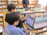 1年生は道徳科で「はしの上のおおかみ」を読んでもらっているところでした。2年生は、何やら準備中です。