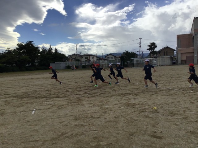 来週の陸上交歓会に向けて50m走の練習を行いました。当日にむけて気合い十分です!