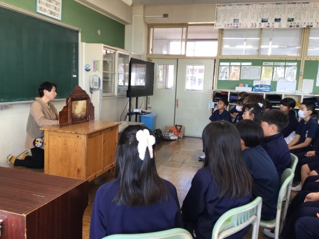 今日の国語の時間は、「おはなしたまご」の講師の先生が、子どもたちのためにブックトークをしてくださいました。子ども達をひきつけるお話の仕方は、さすがです! どのクラスの児童もすっかりお話の世界に引き込まれていました。