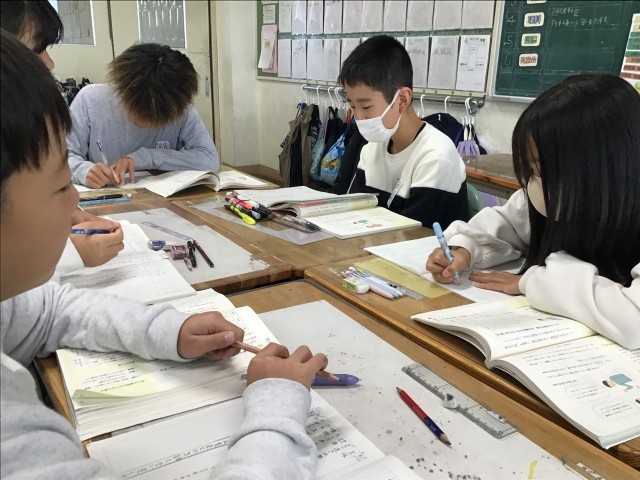 国語の学習では、1年生との遊びにむけて話し合いを進めています。今日はグループごとに話し合い仮の結論を出しました。実際に遊ぶ日が楽しみです。