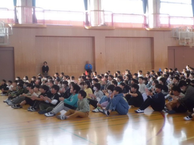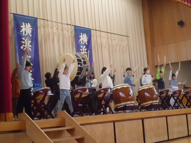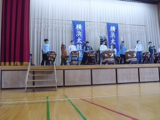 10月29日、水曜日に音楽鑑賞教室がありました。昨年は、演劇でしたが今年は音楽です。「横浜太鼓座」という団体が大槻小学校に来てくれました。和太鼓の迫力ある演奏に子ども達も楽しそうに聴き入っていました。また、太鼓のリズムで手拍子を打ったり、代表児童がしめ太鼓の演奏をさせてもらったりしました。最後には、獅子の舞がありました。