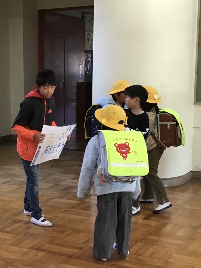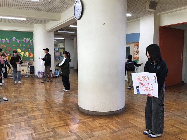 大槻小学校にあいさつの輪を広めていくために継続的に活動していきます。