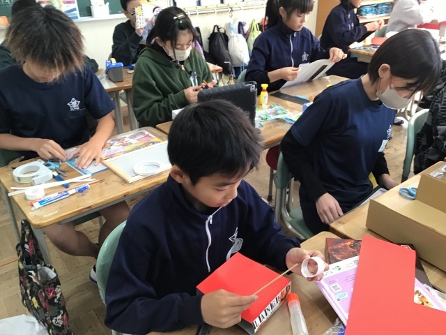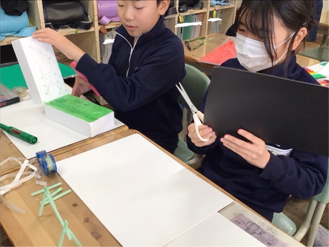 社会問題を解決するために、「あったらいいな」と思うものをつくる学習を図工で進めています。どんなものができるのか楽しみです。
