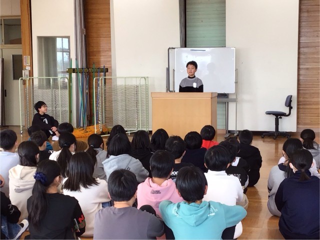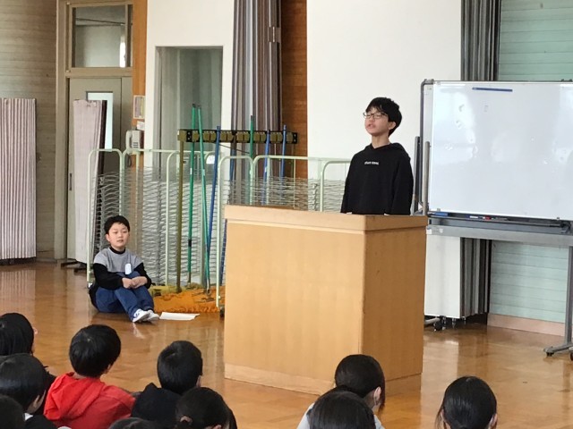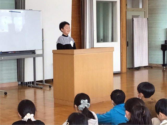 1月17日(土)に大槻公民館で行われる「大槻地区少年の主張」の発表を行う2名のお友達です。本番に向けて、学年で発表会を行いました。2人ともとても堂々としていました。本番でも自信を持ってがんばってほしいいと思います。