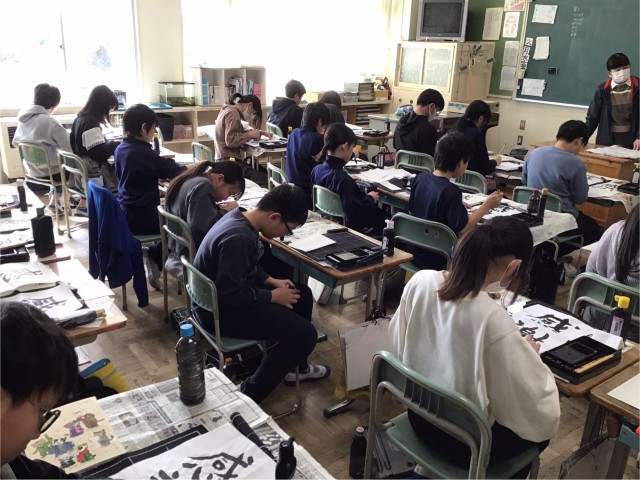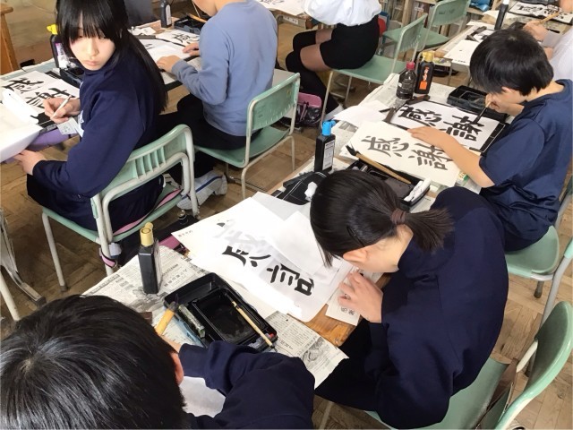 「感謝」の気持ちを、習字で表しました。真剣に取り組みました。