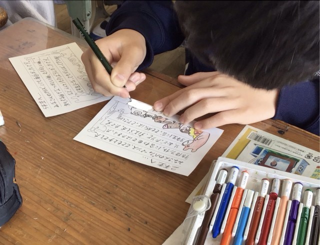 6年生を送る会で、6年生のために素晴らしい発表をしてくれた各学年へのお礼の手紙を書きました。みんな、心を込めて手紙を書いていました。
