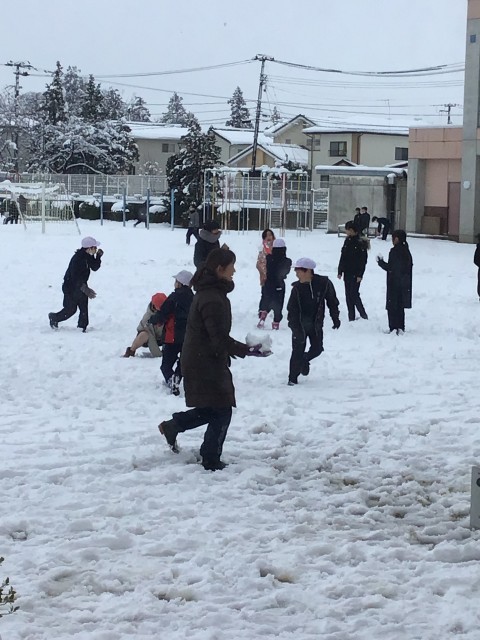 雪の日の校庭には