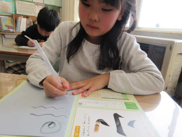 書写の時間に水筆を使った学習をしました。