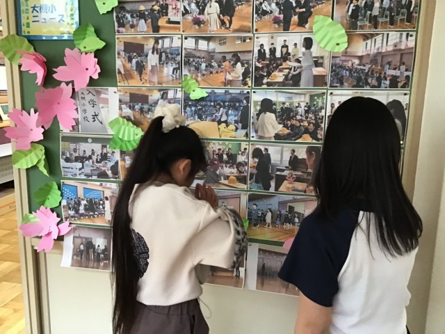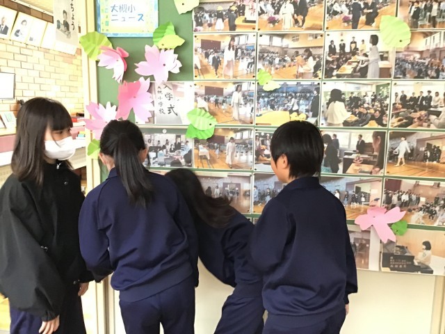 校長室前の掲示板にて