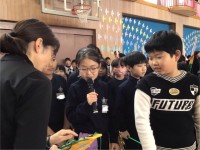 興味深い、たくさんの惑星(星)などの写真パネルが、理科室ろうかの掲示板に展示してあります。