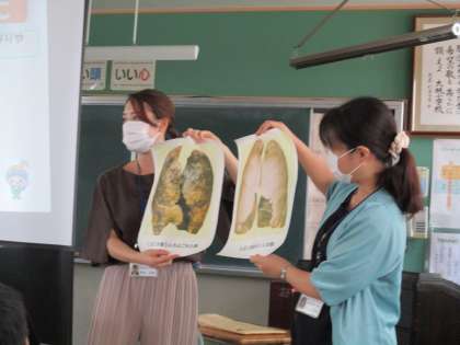 9月10日(木)3校時目にがんについて学びました。保健所の健康増進課の方にがんは、どんな病気か・かからないために気を付けることは何か・早くがんを見つけるために大切なことは何か について教えていただきました。最後に子ども達の質問に答えていただきました。がんについて、ほとんどの子ども達が知っており、身近な病気です。がんのおはなし回答編を持たせますので、ご家庭でも一緒に見ていただければと思います。