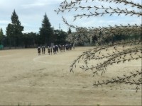 今朝は、運動会に向けて4年生以上のリレーの選手が、校庭で並び方や走る順序等を確認していました。