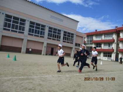 絶好のコンディションのもと、持久走大会が行われました。6年生は1000mに挑戦。自己ベストめざして健脚を競いました。友達や保護者の方の応援を受け、ゴール。苦しい表情がやりきった笑顔に変わった瞬間でした。