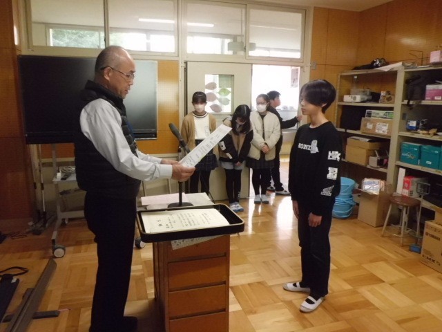 28日(木)のお昼、放送での賞状の伝達が行われました。