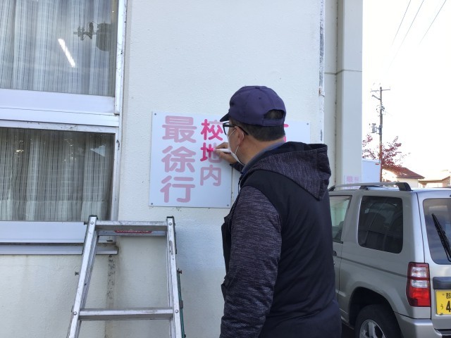 正門前を【歩車分離】ー歩行者と車両の分離ーができるように車止めをチェーンでつなぎ...