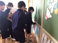 離任式では子どもたちを代表して5年生が先生方への別れの言葉を発表しました。静まり...