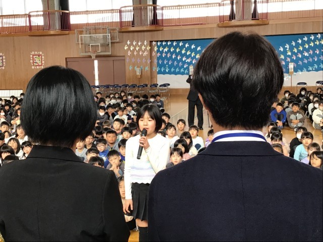 新しく着任された先生方をお迎えするにあたり児童代表として6年生の児童が歓迎のあい...