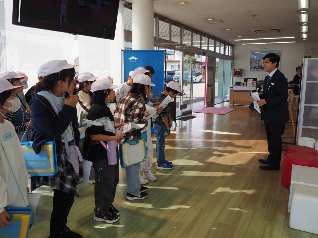 先々週と先週の2週にわたって、地域の企業やお店を訪ね、SDGsに関する取り組みについて学ぶ校外学習を行いました。子どもたちは、環境に配慮した商品づくりやリサイクル活動、エネルギーの工夫など、さまざまな実践を見聞きしました。熱心にメモを取る姿もあり、それぞれが関心をもって学習に取り組むことができました。今月末での授業参観では、学んだことをまとめてポスター発表をする予定です。どうぞお楽しみに。