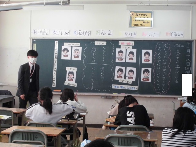行健小学校では、「リーダー・イン・ミーの教育プログラム」を通して、自己選択・自己決定し主体的に学ぶことができる子どもの育成を目指して日々の学習に取り組んでいます。今回の授業では「友達がいやな思いをしている時にどうしたらいいか」を考えました。グループの友達と話し合い、どうすれば互いに「Win―Win」な気持ちで生活できるのかを考えることができました。どんな自分になりたいか、決めるのは自分。一人一人が真剣に自分自身と向き合った授業でした。