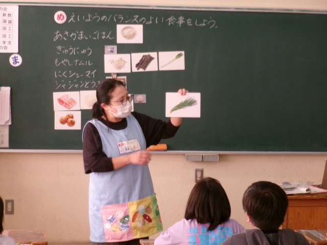 3年生では、10日から12日にかけて、行健小の管理栄養士である窪田先生をお迎えして、学活の一環として各学級で食育の学習を行いました。
