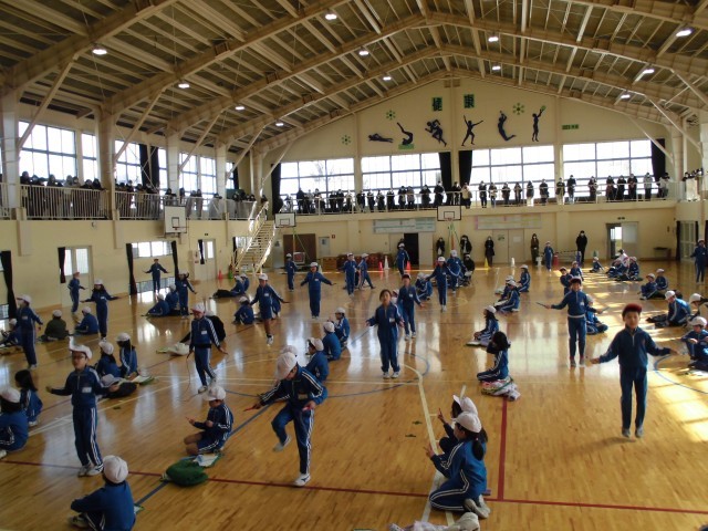 1月23日(金)3,4校時目に、体育館で3年生のなわとび記録会が行われました。
