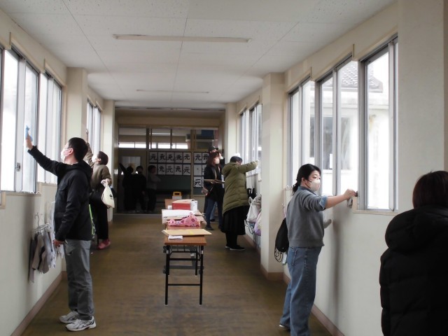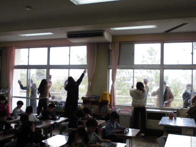 また、PTA奉仕作業も行いましたが、普段はなかなか清掃できない高い場所の窓ふきをしていただき、とてもきれいになりました。ご協力いただきました保護者の皆様、本当にありがとうございました。