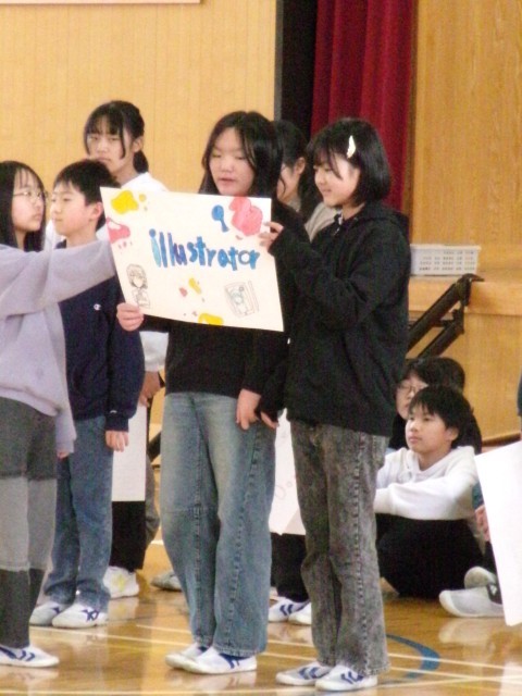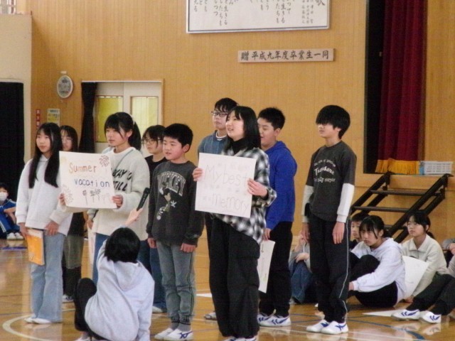 これまでに学習したことの中から、国語・英語・体育の各チームに分かれ、発表しました。