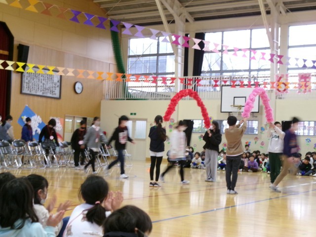 最後に全校生で歌を歌い、6年生を見送りました。中には涙を見せる6年生もいて、会は大成功に終わりました。