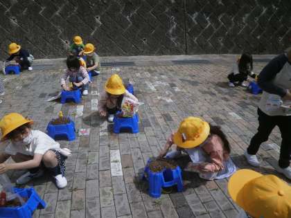 1年生では、あさがおの種まきをしました。種の観察をしてから、きれいで大きな花が咲くように、気持ちを込めながらまきました。これからの成長が楽しみです。