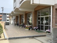 昇降口にはきれいなお花がたくさん