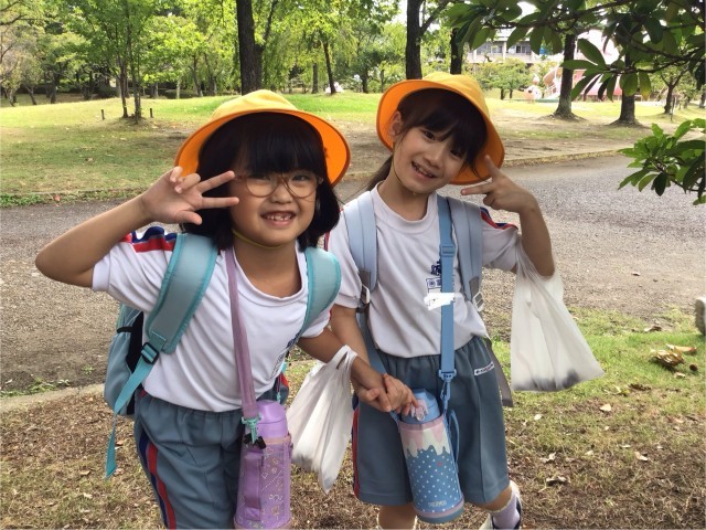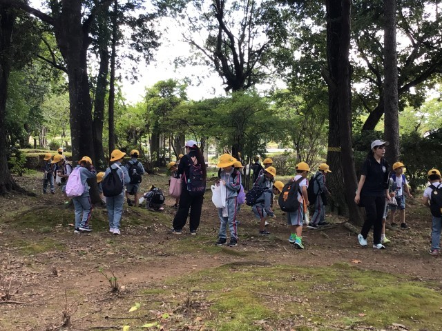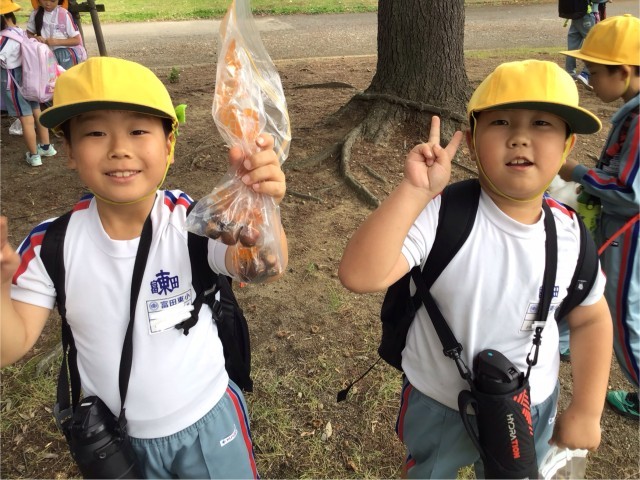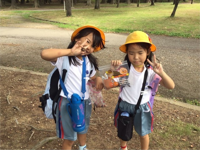 公園についてすぐにどんぐり拾いをしました。たくさんの種類のどんぐりがたくさん落ちていて、子どもたちは夢中になって拾いました。