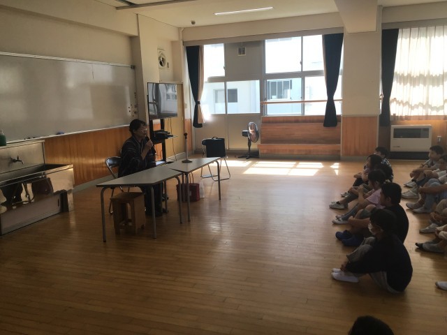 3年生は、国語の学習で「ちいちゃんのかげおくり」という物語を読みました。戦争を知らない子どもたちが当時の生活の様子を想像するのはとても難しいことです。今日は、品竹 悦子先生にお越しいただき、戦争当時の郡山市の様子について教えていただきました。自分が住んでいる郡山市にも爆弾がたくさん落ちたことを知り、子どもたちもとても驚いていました。品竹先生のお話をとても真剣に聞いている子どもたちの姿が印象的でした。