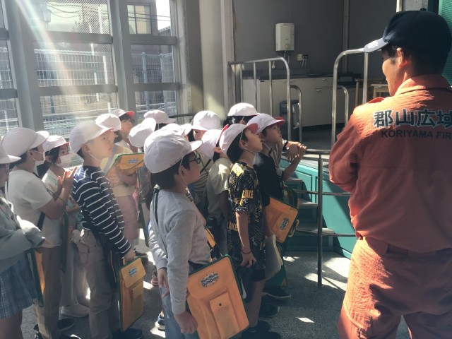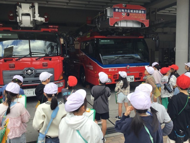 郡山消防署を見学させていただいています。通信司令室を見せていただいたり、地震体験、煙避難体験などをさせていただいています。詳しく説明をしていただき、子どもたちは、たくさん学んでいます。みんなの命を守ってくれている消防士のみなさんは、すごいなあ。