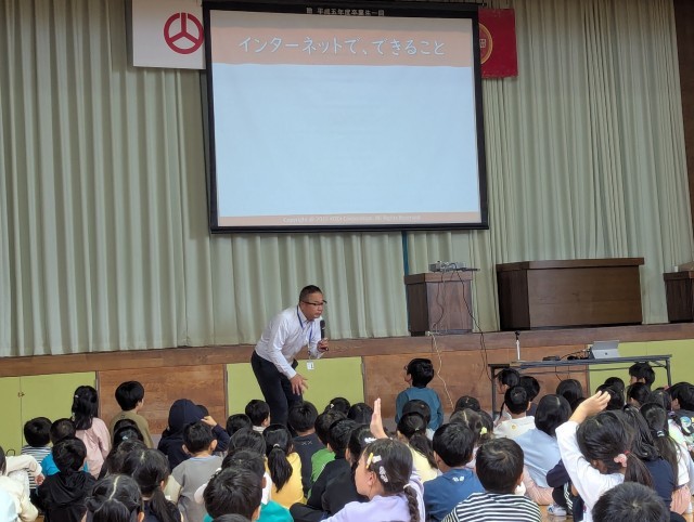 本日、東京より講師の先生をお招きし、情報モラル教室を行いました。2校時目は下学年、3校時目は上学年が行いました。学年に合わせて、スマホやタブレットの使用で起こるインターネットのトラブルについて、具体的な例を挙げて教えていただきました。ゲームの課金やSNSへの依存、人間関係のトラブルなど身近な問題を子供たちも真剣に考えていました。