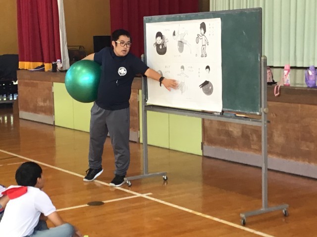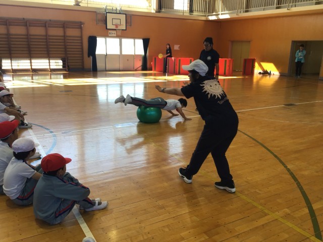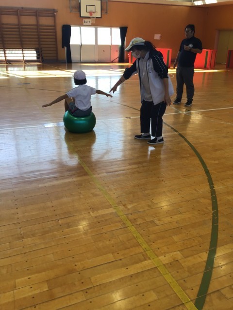 たんぽぽ・ひまわり学級の子どもたちが、合同体育でバランスボールに挑戦しました。バランスボールの上に座って足を離してみたり、バランスボールの上に身体全体を乗せて静止したり、小さいボールを何度もドリブルしたりと様々な動きをやってみました。上手にできたお友達の様子を見てこつを掴んだり、先生方に支えてもらったりして何度も練習するうちにみんなとても上手になりました。授業が終わった後はみんな汗びっしょり💦とても頑張りました。