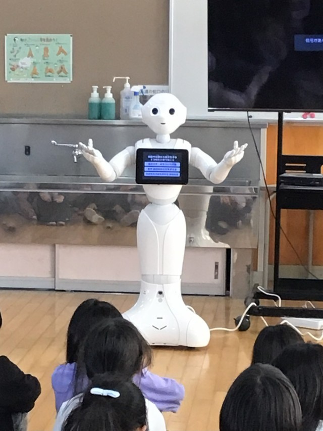 今日はソフトバンクの協力で、ペッパー君による授業を行いました。