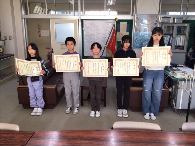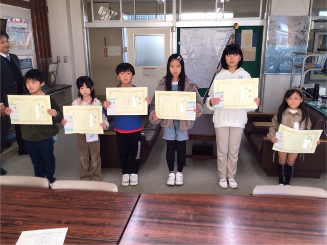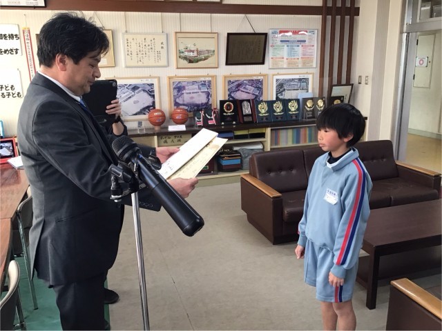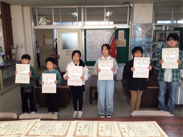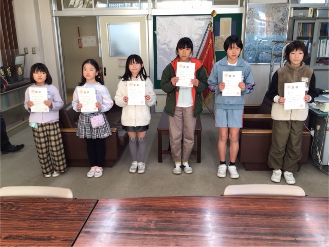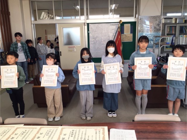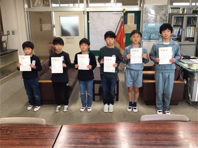 お昼休みに、表彰を行いました。今日表彰されたのは、交通安全ポスター及び作文展、小学生の税に関する習字展、福島県児童作文コンクール、富田地区あいさつ運動標語コンクール、郡山市思いやり作文コンクール、校内マラソン大会1位の子どもたちです。おめでとうございます。