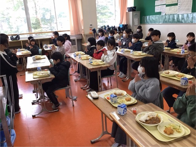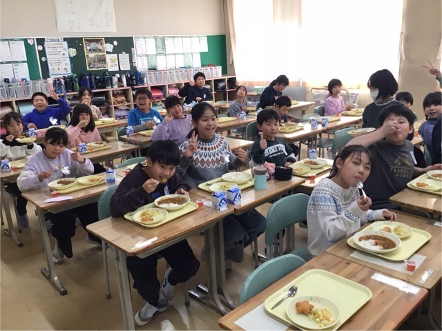 今日は、二学期最後の給食の日でした。メニューは子どもたちが大好きなカレー🍛でした。星型の可愛いコロッケもついて子どもたちはニコニコ顔でした。調理員のみなさん長い二学期間、美味しい給食を作ってくださってありがとうございました。