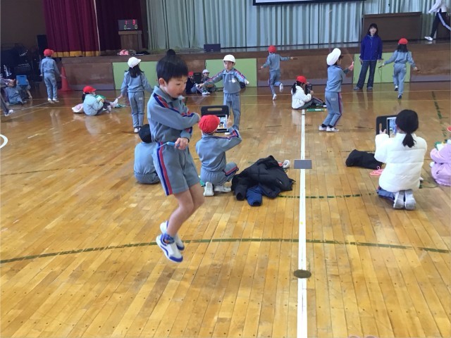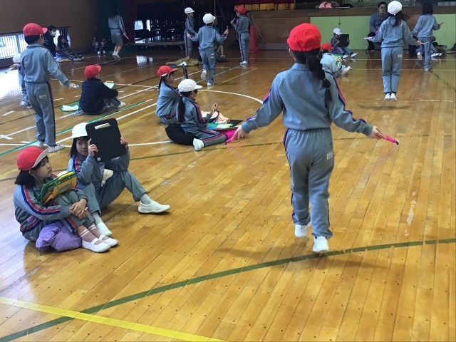 3、4校時目に2年生のなわとび大会を行いました。2年生は、2分間の持久跳びに挑戦しました。今日は、2分間を跳び切った子どもたちがたくさんいました。種目跳びでは、タブレットを活用して友達の跳んだ回数を確実に数えました。友達の応援に支えられて、種目跳びもがんばり、新記録も出ました。1年生の時よりも、様々な跳び方ができるようになった2年生の姿に大きな成長を感じました。