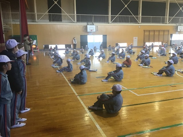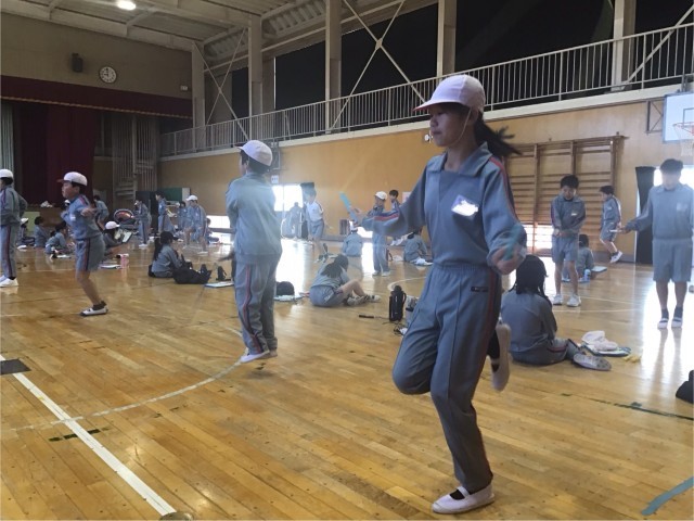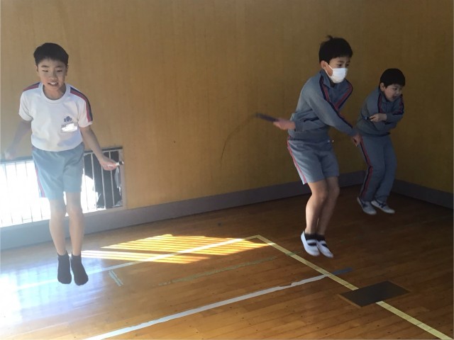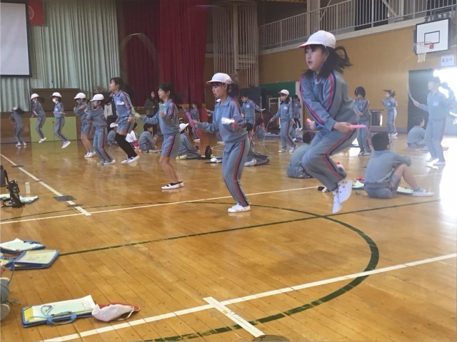 1、2校時に4年生のなわとび大会がありました。4年生は、4分間の持久跳びにチャレンジしました。友達のがんばれという声に励まされて、たくさんの子どもたちが合格することができました。その後は、自分で選んだ2つの種目とびにチャレンジしました。寒い体育館が4年生の熱気に包まれていました。
