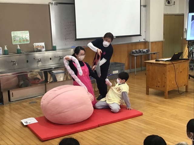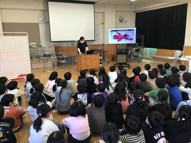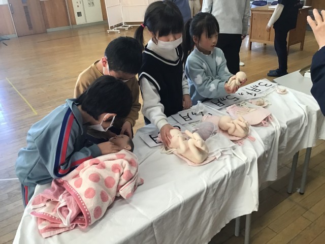 郡山市助産師会の皆様を講師にお迎えして、命の教室を行いました。赤ちゃんがお母さんのお腹の中でどのように育っていくのかお人形を抱っこさせてもらって実感したり、お腹の中の赤ちゃんの心臓の音を聴かせてもらったりしました。また、代表の児童が、お母さんのお腹の中からどうやって産まれてくるのかを演じ、子宮の中の温かさを友達に伝えました。子どもたちは、授業を通して、命の大切さや自分のお母さんも頑張って自分を産んでくれたことなどを感じることができました。