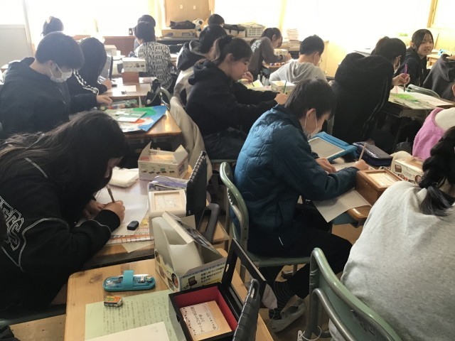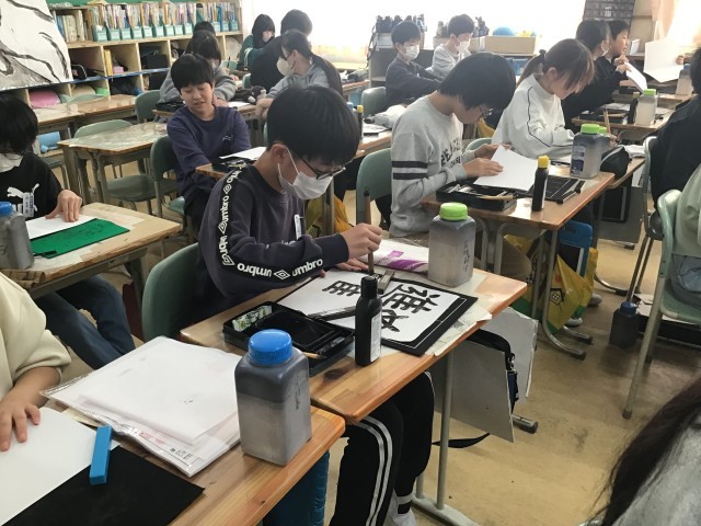 4組の外国語科の様子です。自分は将来どんな職業に就きたいのかを英語でなんと言うのかを学んでいました。2組では、卒業制作を作り始めるところでした。1組は、じぶんのこれからの決意を毛筆で表していました。子どもたちの学習内容を見ながら、6年生の卒業が近づいていることを感じました。