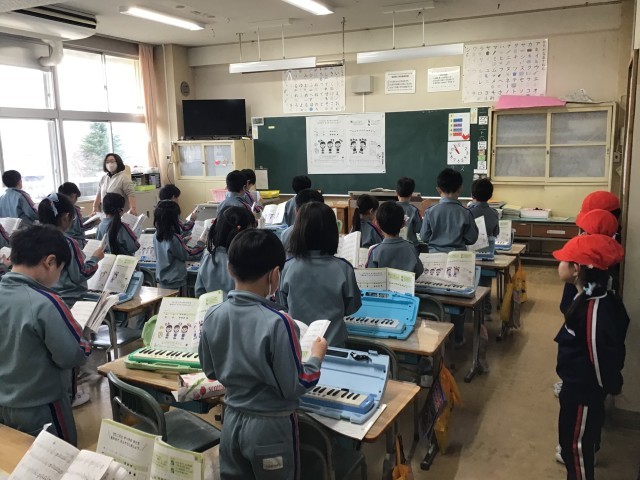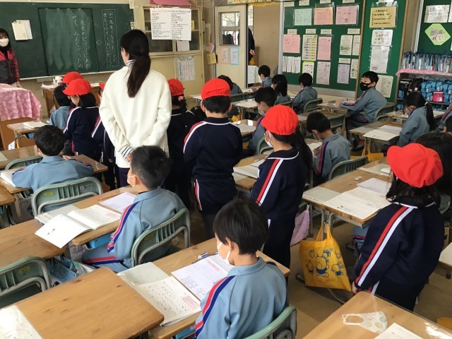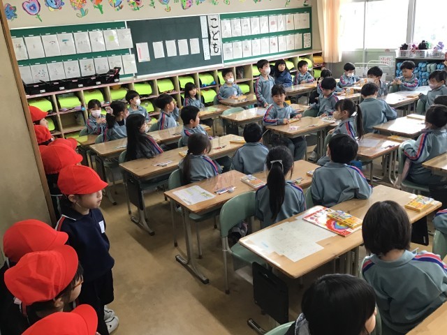 今日は、富田幼稚園の年長さんをお招きして、小学校体験会を行いました。1年生の子どもたちの授業の様子を見学してもらいました。1年生の子どもたちもとても張り切って、音楽や生活科、算数、書写の学習に取り組みました。最後に明日の「6年生を送る会」に向けて練習してきたダンスを披露しました。幼稚園のお友達も音楽にのって楽しそうに見てくれました。4月から「小学校って楽しそうだな」という気持ちを持って学校に来てくれると嬉しいです。1年生の子どもたちもちょっぴり、お兄さん、お姉さんの表情で頼もしかったです。