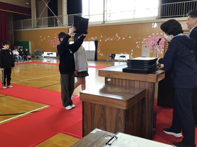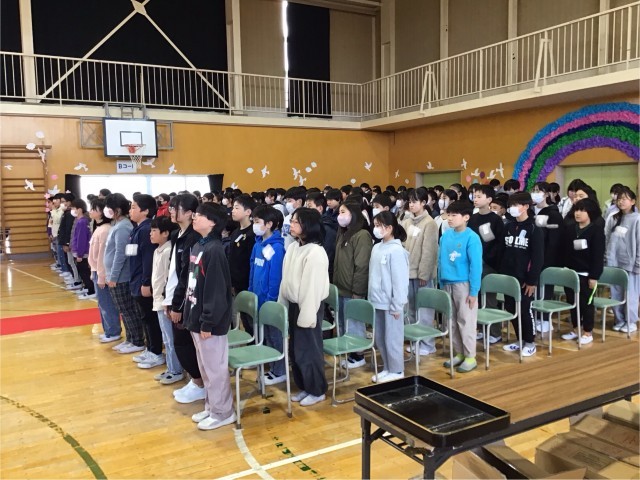 今日は、3、4校時目に卒業式の予行練習が行われました。たくさんの先生方も参加して、本番と同じように通しました。緊張感の中、子どもたちは、気持ちのこもったすばらしい呼びかけをすることができました。5年生の歌も6年生の歌もとても感動的でした。6年生は、小学校での生活もあと4日となりました。1日、1日を大切に過ごし、富田東小学校での思い出を作ってほしいと思います。