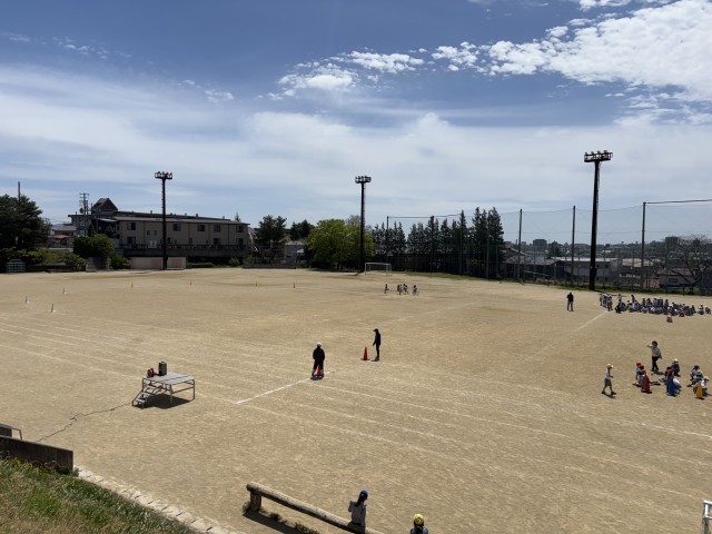 ゴール目指して一生懸命走っています。強い風に負けずに頑張れ!