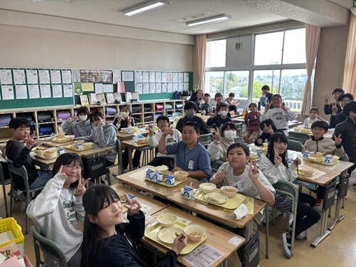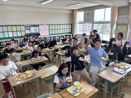 校歌を聞きながらの給食。まさに「おいしい給食」ですね