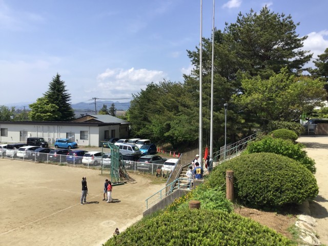 そして、掲揚塔のところでは、国旗や校旗の上げ下げの練習をしていたよ。