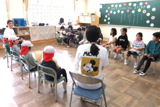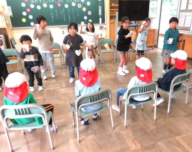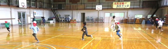 保育所の皆さんが学校見学においでになりました。1・2年生が校歌を披露したり、校舎案内をしたりしました。みんな笑顔で交流することができました。体育館での鬼ごっこも楽しくできました。充実した時間になりました。