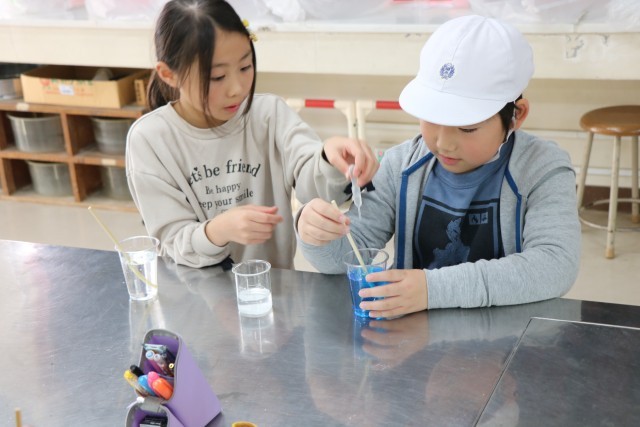 「ものづくり・実験クラブ」ではスライムを作り、「スポーツクラブ」ではしっぽ取りゲームに参加。「ホームメイキングクラブ」ではクラッカーパーティでおいしいおやつをいただきました。どれも楽しくて、お兄さんお姉さんがやさしくし教えてくれたので、3年生は来年何クラブに入ろうかずいぶん迷ってしまった様子でした。